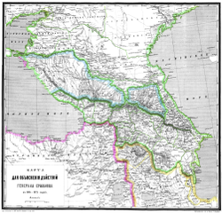 Осенью, когда татары возвращались с кочевок, посты снимались, так как зимой, по причине глубоких снегов, пути становились там непреодолимыми. Таким образом, общее число войск, охранявших весь край, состояло из казачьего полка, силой около пятисот коней, двух батальонов Тифлисского полка (третий батальон его был на Кавказской линии) и двух рот карабинеров, временно передвинутых сюда из Манглиса,— всего около трех тысяч штыков, при двенадцати орудиях легкой роты Кавказской гренадерской артиллерийской бригады - ↑ Керсновский А. А. Гл. 8. Покорение Кавказа // История русской армии. В 4 томах / Ред. В. Купцовой. — М.: Голос, 1993. — Т. 2. — С. 99. — 100 000 экз. — ISBN 5-7055-0864-6.