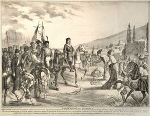 Осенью, когда татары возвращались с кочевок, посты снимались, так как зимой, по причине глубоких снегов, пути становились там непреодолимыми. Таким образом, общее число войск, охранявших весь край, состояло из казачьего полка, силой около пятисот коней, двух батальонов Тифлисского полка (третий батальон его был на Кавказской линии) и двух рот карабинеров, временно передвинутых сюда из Манглиса,— всего около трех тысяч штыков, при двенадцати орудиях легкой роты Кавказской гренадерской артиллерийской бригады (Потто В. А., «Кавказская война». т. 3. Персидская война 1826—1828 гг.). - ↑ Шишкевич М. И. Глава 7 — Персидская война 1826 года. Ермолов и Паскевич (очерк генштаба генерал-майора Шишкевича М. И.) // История русской армии и флота / ред. Гришинского А. С. и Никольского В. П.. — М.: Образование, 1911. — Т. 6 — Покорение Кавказа. Персидские и кавказские войны. — С. 66—67. — 197 с.