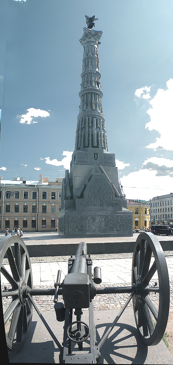 В столице Российской империи — Санкт-Петербурге — в 1886 году в честь подвигов русских войск, принимавших участие и победивших в войне, был воздвигнут памятник Славы. Памятник представлял собой 28-метровую колонну, сложенную из пяти рядов пушек, отбитых в войну у турок. На верху колонны был расположен гений с лавровым венком в протянутой руке, увенчивающий победителей. Пьедестал памятника имел высоту около 6½ метров, со всех четырёх сторон которого были вделаны бронзовые доски с описаниями основных событий войны и названий воинских частей, принимавших в ней участие[72]. В 1930 году памятник был разобран и переплавлен. В 2005 году — восстановлен на прежнем месте.