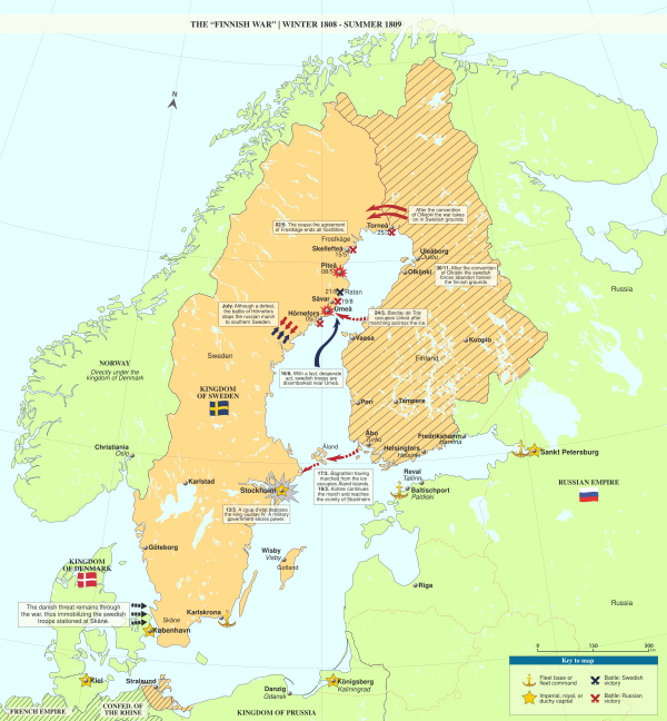 Великобритания, со своей стороны, в феврале 1808 года заключила со Швецией договор, по которому обязалась платить Швеции по одному миллиону фунтов стерлингов ежемесячно во время войны с Россией, сколько бы она ни продолжалась.