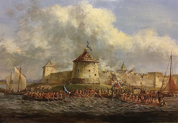 11 октября. Штурм войсками Шереметева Нотебурга (бывшей новгородской крепости Орешек, отошедшей к шведам по Столбовскому миру 1617 года); после тринадцатичасового упорного боя крепость была взята; 50 лодок, перетащенные сухим путём из Ладожского озера в Неву, отрезали крепость со стороны моря, откуда она получала помощь. Пётр I переименовал Нотебург в Шлиссельбург — в знак того, что эта крепость стала ключом к выходу на море.