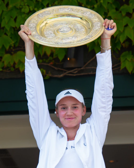 Еле́на Андре́евна Рыба́кина (род. 17 июня 1999, Москва) — казахстанская теннисистка, до июня 2018 года выступавшая за Россию[2]. Победительница Итогового турнира WTA (2025) в одиночном разряде, двух турниров Большого шлема в одиночном разряде (Уимблдон-2022, Открытый чемпионат Австралии-2026); третья ракетка мира (2023, 2026)[3], победительница 12 турниров WTA в одиночном разряде[4][5]; чемпионка Европы в юниорском командном первенстве до 18 лет.