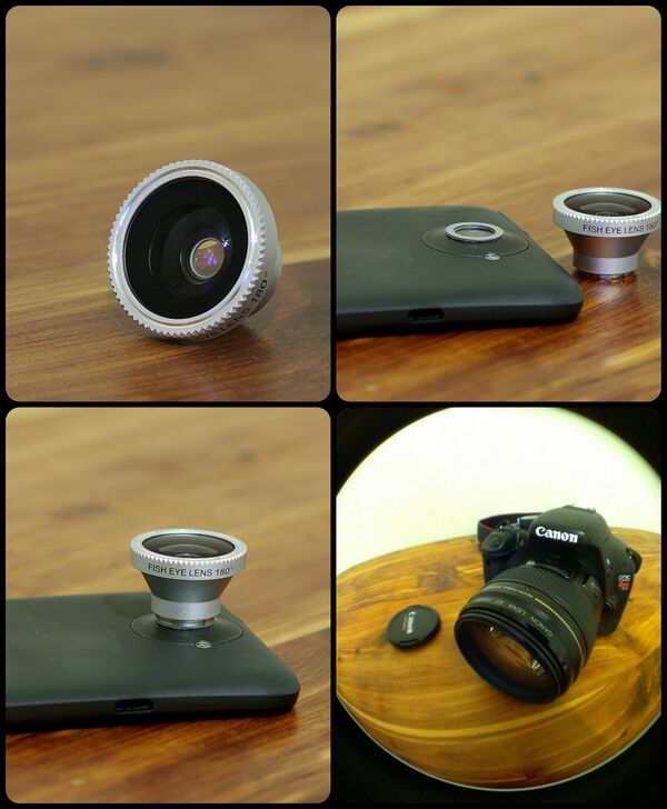 Дисторсирующие насадки оказались удобны для совместной работы с телевизионными вариообъективами, придавая характерное искажение и увеличивая угол обзора, однако из-за оптических особенностей оптики с переменным фокусным расстоянием вся комбинация работоспособна только в положении «макро» при неработающем зуме[52]. Кроме того, такие насадки рассчитаны на очень близкое расположение к основному объективу, накладывая определённые ограничения на диаметр и конструкцию его оправы. В последнее время получили широкое распространение дисторсирующие насадки для камерафонов, к которым крепятся магнитным кольцом или специальным зажимом[53]. Поле зрения камер с такими насадками не всегда достигает 180°, но характерная дисторсия обеспечивает необходимый изобразительный эффект без обработки снимков соответствующими приложениями[54].