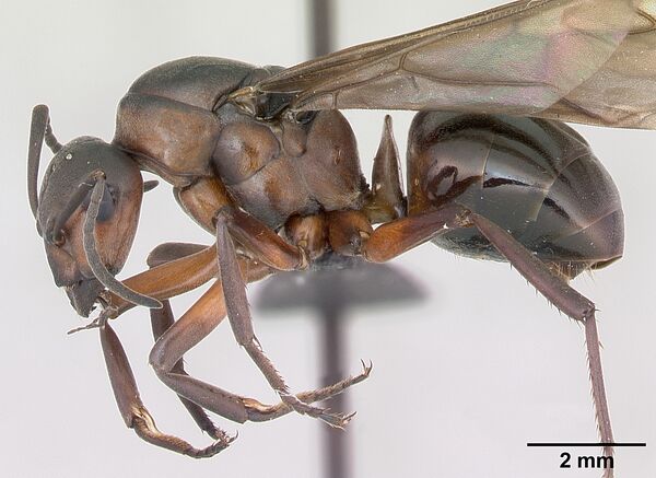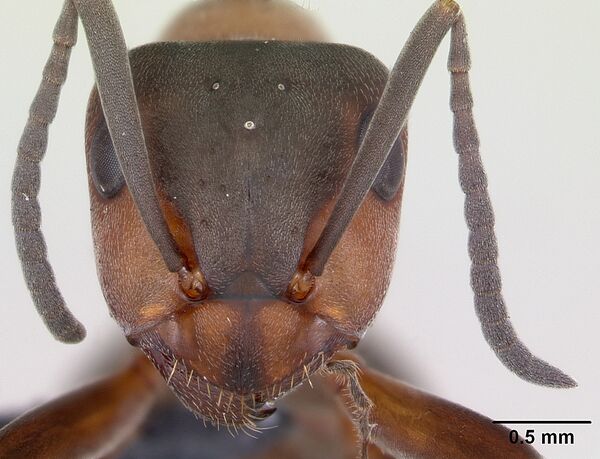 Рабочие особи достигают 4–9 мм в длину, в то время как матки и самцы бывают 9–11 мм. Окрас головы и тела — красновато-бурый, а брюшко блестящее и чёрное. Характеризуются большой головой, с фасеточными глазами, расположенными по бокам. Ротовой аппарат — грызущего типа, с мощными жвалами. Грудь обёрнута хитиновой оболочкой рыжеватого цвета.