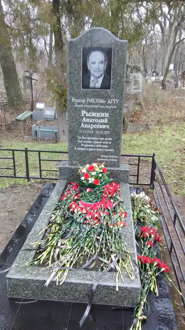 Рыжкин Анатолий Андреевич (21 января 1938 — 26 января 2021[1]) — ректор ДГТУ с 1988 по 2007 годы. Доктор технических наук, профессор, заведующий кафедрой «Инструментальное производство». Специалист в области трения и износа материалов. Заслуженный деятель науки и техники РФ, почетный работник высшей школы РФ. Вице-президент Ассоциации инженерного образования России, член проблемного Совета по машиностроению при Министерстве образования и науки РФ. Лауреат премии Президента Российской Федерации в области образования за 2002 год.