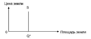 - ограниченность доступности качественного земельного ресурсаː в отличие от капитала или труда, общее количество земли на планете фиксировано[7]. Это обусловливает вертикальный график предложения в макроэкономическом масштабе: никакое повышение цены не может стимулировать создание новых природных площадей;