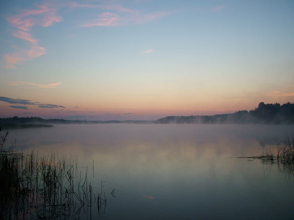 Я много раз слышал, что Рытое — самое большое и самое красивое озеро после Сапшо, а теперь воочию убедился в этом. Два острова, как две большие лодки с зелеными парусами, казалось, плыли друг другу навстречу. Над нашими головами, неторопливо взмахивая большими крыльями, пролетали аисты и направились к одному из островов. Пахло водяными дудками, сухой хвоей и перезревшей земляникой. Земляники на берегу у подножия крутого холма было столько, словно кто-то нарочно высыпал её из полного кузовка. А может быть, само лето приходит отдохнуть на это место, подумалось мне. Сидит на закате, опустив босые загорелые ноги в воду, и смотрит, как на чуть розовеющую гладь наплывают сумерки, слушает, как переговариваются деревья.