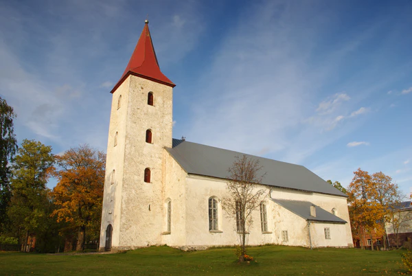 Посёлок Рыуге сформировался в конце 19-ого столетия в окрестностях лютеранской церкви. Церковь в письменных источниках впервые упомянута в 1613 году, но, по всей вероятности, была возведена ещё до Ливонской войны, и на месте этой разрушенной в Северной войне церкви в 1729—1930 годах было построено нынешнее каменное строение. Его объёмную перестройку выполнили в 1860 году. Алтарная картина «Христос на кресте» выполнена после 1854 года. Орган сделали братья Крийс (Kriis) в 1929 году; он имеет 31 регистр, 8 мануалов, 2147 труб[8].