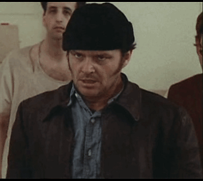 Он начал с безобидных шуток, медленно перерастающих в зачатки настоящего бунта против Сестры. Так, например, он заставил персонал отдать не использующуюся комнату для водных процедур под игровой зал, а первая часть романа заканчивается тем, что Макмерфи, страстно желавший посмотреть бейсбольный матч и не смогший уговорить пациентов проголосовать за смену распорядка ради матча, во время его показа усаживается смотреть выключенный телевизор, а больные, сделав выбор, уселись рядом с ним, несмотря на гнев Сестры.