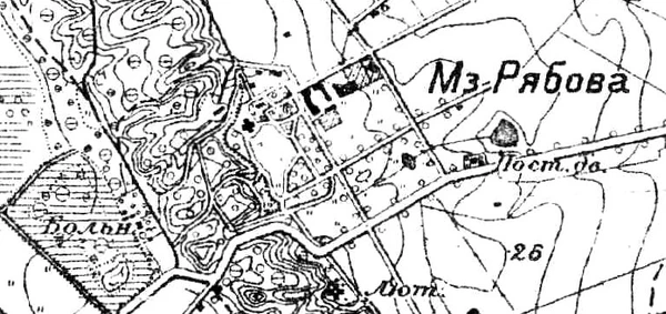 РЯБОВО — имение, владельческая мыза Всеволожского при земской шоссейной дороге 2 двора, 64 м п., 46 ж. п., всего 110 чел. Домовая церковь. (1896 год)[26]