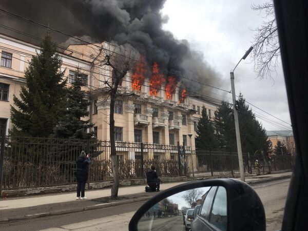 На время тушения пожара ГИБДД остановило движение по улице Каширина, на территории плаца расположился штаб пожаротушения.