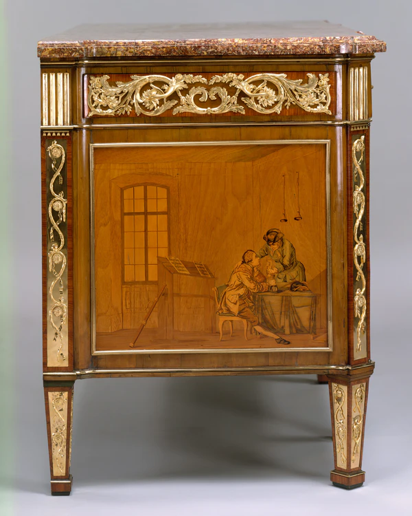 Рёнтген впервые приехал в Париж в 1774 году. Он увидел перемену французской моды и стиля от рококо к неоклассицизму, или «стилю Людовика XVI», и смело перенёс освоенные им к тому времени технологические приёмы на новые виды мебели. Он также знакомился с неоклассическим стилем в мастерских французских живописцев, рисовальщиков и гравёров.