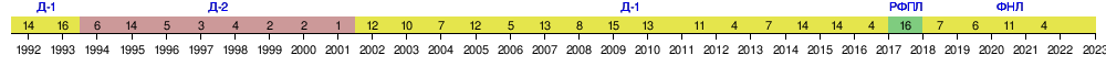 - В первенствах России: 16-е место в РФПЛ в сезоне 2017/18.