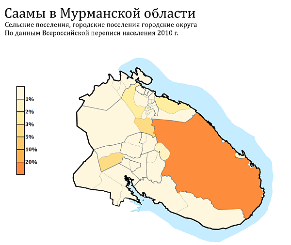 Подавляющее большинство саамов России проживает в Мурманской области.