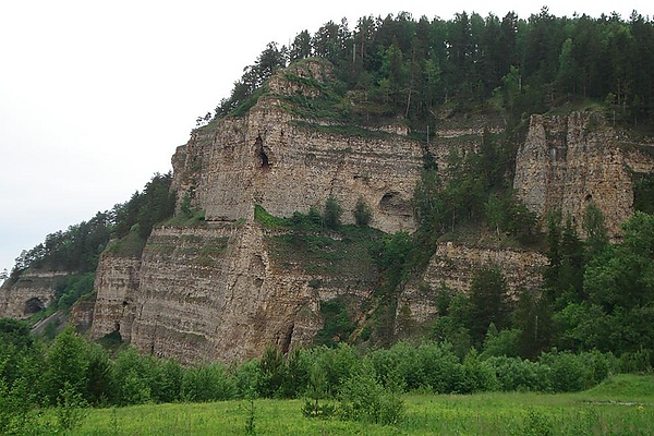 Скала поднимается на 90 метров над долиной, образуя отвесный обрыв. Её верхняя часть плавно переходит в утёс, создавая впечатление массивного замка, а тёмные входы в пещеры выглядят как бойницы.[1] Скала представляет собой крутой двуступенчатый обрыв высотой около 70 м, сложенный известняками артинского яруса нижней перми.[2]