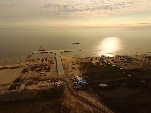 В 2012—2013 годах был создан технологический канал длиной 3,9 км, шириной 240 м, глубиной 12,4 м и акватории вспомогательных причалов, что позволило начать доставку оборудования и материалов к месту строительства порта[4].