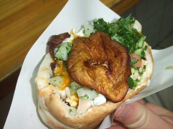 В Израиле эти ингредиенты со временем стали популярными как фаст-фуд. Говорят, что впервые это блюдо было продано в Израиле в 1961 году в небольшом киоске на улице Узиэль в Рамат-Гане[6][4]. В 2020 году площадь, примыкающая к нынешнему местонахождению заведения, получила название «площадь Сабиха».