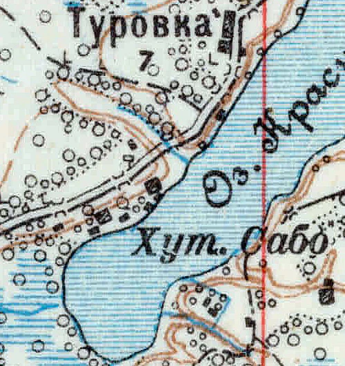 САБА — усадьба владельческая при озере Красногорском, число дворов — 1, число жителей: 2 м. п., 5 ж. п.[8] (1862 год)