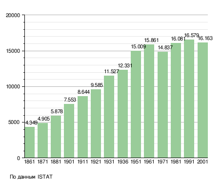 Население составляет 20 572 человека (2008 г.), плотность населения составляет 363 чел./км². Занимает площадь 44 км². Почтовый индекс — 74028. Телефонный код — 099.