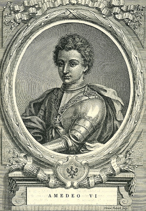 Первое упоминание восходит к 20 июня 1366 года, когда граф Савойский Амадей VI отправлялся в крестовый поход против турок, благословлённый папой римским Урбаном V, в помощь войскам византийского императора Иоанна V Палеолога, который приходился ему родственником по материнской линии. Амадей собрал флот из 17 кораблей с 2 тысячами человек на борту и приказал, чтобы на флагманском корабле — венецианской галере — рядом со знаменем Савойи, красным знаменем с серебряным крестом, развевался синий флаг[2]. Луиджи Чибрайо писал в своих книгах об этом флаге[3]: