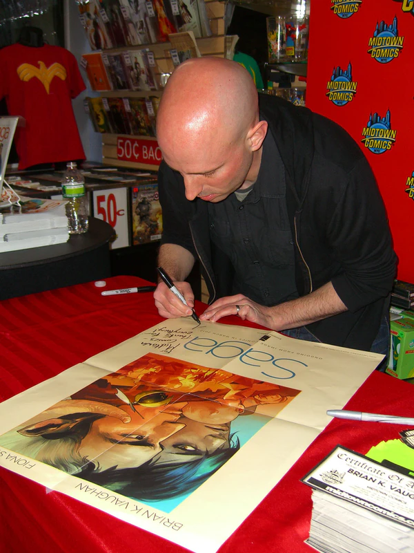Мне нравятся компании, с которыми я раннее работал, однако я считаю, что Image — это единственный издатель, который по прежнему предложил бы мне контракт на публикацию полностью авторской работы — «Саги». Это действительно очень важная вещь для меня, так что мне нужны были гарантии того, что на мой контент не будут накладывать ограничения и я смогу сохранить 100%-ный контроль и владение авторских прав, даже не связанных с публикацией, включая право никогда не превращать мой комикс в фильм, теле-шоу или что-то еще ... [Image Publisher] Эрик Стивенсон был единственным издателем, который после данного разговора остался в восторге от данной сделки, а также соучредительница Фионе Стейплс и мне не и мне не нужно было подписывать особые документы или соглашаться работать над кучей корпоративных названий, чтобы добиться желаемого.