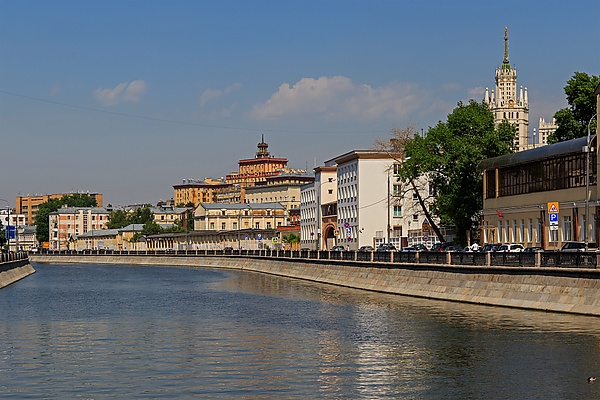 Устьинский проезд и Комиссариатский мост разделяют набережную на две самостоятельные части. Западная (от Балчуга до Комиссариатского моста) — полностью нежилая. Восточная — смесь остатков исторической жилой застройки, военные учреждения в постройках XIX века и офисы на месте бывшего Краснохолмского камвольного комбината. Присутствие военных в этой части острова, вероятно, сдерживает натиск современного строительства.