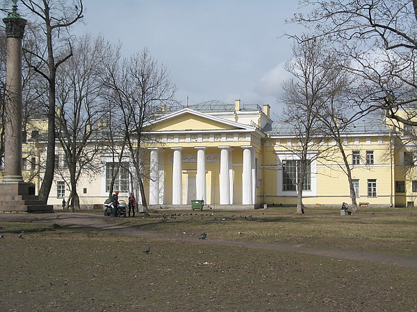 В 1840-е годы А. П. Брюллов построил по сторонам двухэтажные жилые корпуса[3], которые по проекту В. А. Кенеля в 1885—1887 годах[4] надстроили ещё одним этажом каждый (жилые квартиры были и в изначальном проекте, но потом были исключены из него[4]). С центральным корпусом их связывают переходы на арках. Тогда же был расширен и обнесён современной чугунной решёткой сад[3], расширены до современного вида окна корпуса. В западном жилом флигеле одними из первых жильцов были К. А. Тон и А. А. Тон, в восточном — П. В. Басин[4].