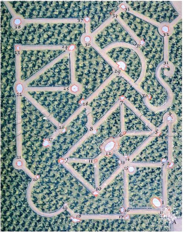 Самым грандиозным из лабиринтов такого типа был Версальский, построенный по проекту Андре Ленотра для короля Людовика XIV в 1677 году. По совету Шарля Перро лабиринт был украшен группами скульптур и фонтанов, изображавшими сцены из басен Эзопа. Современники отмечали, что на дорожках Версальского лабиринта нетрудно заблудиться, и отзывались о нём с неизменным восхищением[4][5]. Но эта постройка оказалась слишком дорогой в содержании и в 1778 году по приказу Людовика XVI была разрушена.
