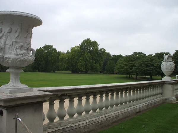 Как и дворец сад богат произведениями искусства. Одним из наиболее известных является Ваза Ватерлоо или Великая урна, заказанная Наполеоном в ознаменование его ожидаемой победы. После того, как работа над вазой была завершена скульптором Ричардом Уэстмакоттом, предполагаемое место её установки в Виндзорском замке было признано негодным для слишком громоздкой (высота — 15 метров, ширина — 4,6 метра и вес — 15 тонн) скульптуры. Лондонская национальная галерея, которой Великая урна была презентована, вернула её в 1906 году Эдуарду VII. Король Эдуард позже решил проблему, поместив Вазу туда, где она сейчас находится.