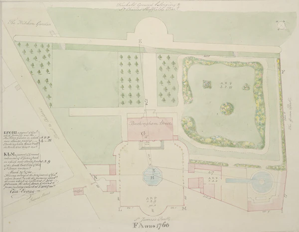 Ландшафтным дизайнером Сада Букингемского дворца был Ланселот Браун, но впоследствии, во время восстановления дворца, сад был изменен Уильямом Эйтоном, Джоном Нэшем и дизайнерами Кью-Гарденз. В 1828 году было завершено большое искусственное озеро, воды которого сообщаются с водами озера Серпентайн в Гайд-парке.