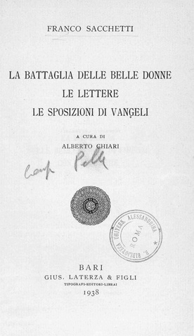 Фра́нко Сакке́тти (итал. Franco Sacchetti; 1332, Дубровник[1] — август 1400[2], Сан-Миниато, Тоскана[3]) — итальянский поэт и писатель. Известен в первую очередь как автор сборника «Триста новелл».