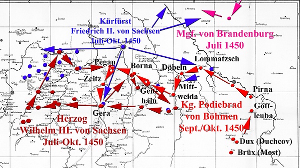 Войска Фридриха, которыми командовал Кунц фон Кауффунген, разбили набранные в Богемии войска Вильгельма под Герой, однако войска Вильгельма сильно разорили местность. Пострадали и владения Кунца, а сам он попал в плен, из которого освободился за выкуп в 4 тысячи золотых гульденов. Война не выявила явного преимущества ни одной из сторон, и в итоге 27 января 1451 года в Наумбурге был подписан мир.