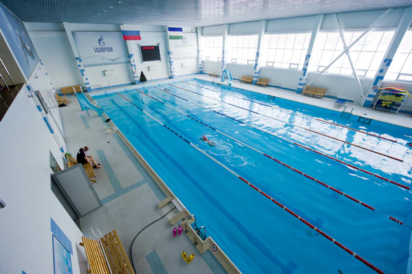 Плавательный бассейн[2] комплекса имеет площадь две тысячи квадратных метров. Он включает в себя шесть дорожек[3] длиной 25 метров, spa-бассейн, детские водные горки, финские и инфракрасные сауны, многофункциональный тренировочный зал площадью 200 м², оборудованный специализированными тренажерами. В среднем новый спортивный бассейн сможет посещать 570 человек в день.