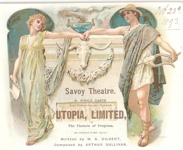 Партнёрство с Гилбертом было настолько прибыльным, что Карт и его жена попытались воссоединить автора и композитора, что им наконец удалось сделать с помощью Тома Чеппела, их музыкального издателя[97]. Их следующая опера «Утопия с ограниченной ответственностью» (1893) была исполнена 245 раз и едва покрыла расходы роскошной постановки[98], несмотря на то, что это была самая длинная постановке в Савое в 1890-х годах.