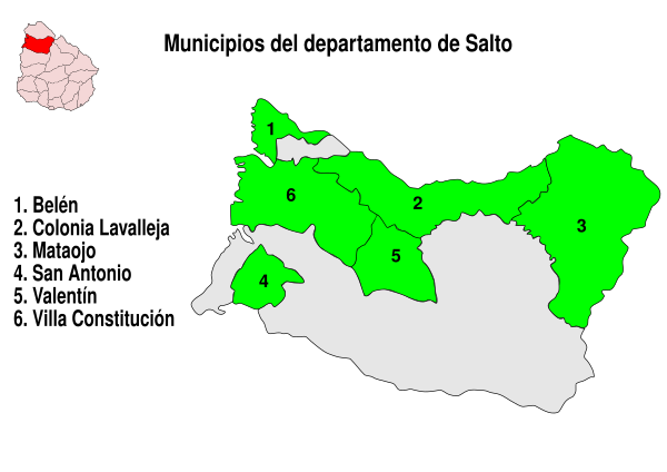 Департамент Сальто делится на 6 муниципалитетов: