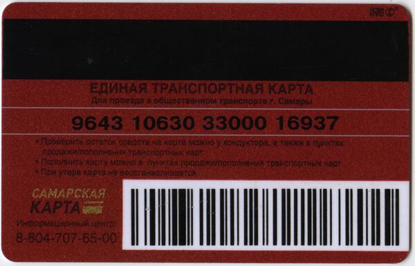 С июня 2008 года также используется система «Электронный проездной»: «Транспортная карта». Существует 3 вида карт, для граждан (представлена на фото ниже), для студентов и для школьников. Также можно приобрести социальную карту, карту жителя Самарской области, Садово-дачную транспортную карту. Тарифы представлены на сайте Самарского метрополитена.[32]