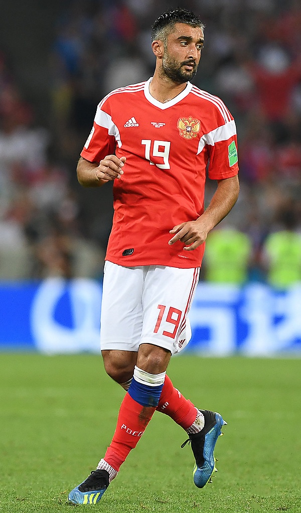 В 2018 году был основным игроком сборной. В товарищеском матче против сборной Турции (1:1) забил гол. Попал в окончательную заявку сборной на домашний чемпионат мира 2018 года и принял участие во всех трёх матчах сборной на групповом этапе — с Саудовской Аравией, Египтом, Уругваем. По результатам этих матчей сборная России заняла второе место в группе и вышла в плей-офф. В 1/8 сборная России обыграла сборную Испании (1:1, 3:4 по пен.), но в 1/4 проиграла сборной Хорватии (2:2, 3:4 по пен.).