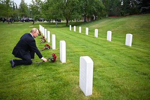 По данным агентства Reuters со ссылкой на двух неназванных чиновников Белого дома, Трамп передал Путину письмо от своей жены Мелании. Они не стали приводить содержание послания, уточнив, что оно касается судеб детей, якобы похищенных во время конфликта на Украине[26]. После встречи Путин и Трамп сделали заявления для прессы. В завершении рабочей поездки Владимир Путин возложил цветы к могилам советских воинов на мемориальном кладбище «Форт Ричардсон», где захоронены останки советских лётчиков и моряков, в годы Великой Отечественной войны обеспечивавших поставки техники по ленд-лизу[27].