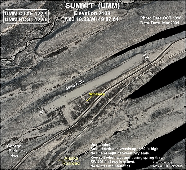 Аэропорт Саммит находится на высоте 734 метров над уровнем моря и эксплуатирует одну взлётно-посадочную полосу[1]: