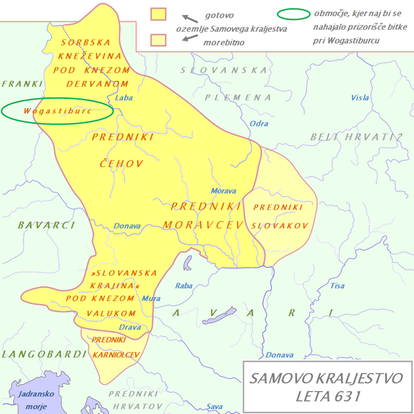 В 631 году на территории государства Само было убито несколько франкских купцов. В ответ франкский король Дагоберт I выслал карательную экспедицию. Однако в битве под Вогастисбургом, продолжавшейся 3 дня, Само разбил франкскую армию. После этого славяне вторглись в Тюрингию и некоторые другие земли, контролируемые франками. Кроме того, к Само присоединился сорбский князь Дерван[9]. Только в 636 году герцог Тюрингии Радульф смог разбить славян, заставив их бежать[10]. Однако после смерти Дагоберта I Радульф сам восстал против франков, разбив в 641 году сына Дагоберта, короля Австразии Сигиберта III. Он стал считать себя королём Тюрингии и заключил договор о союзе с Само[11].