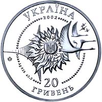| На аверсе: в круге из бусин — изображение малого государственного герба Украины в окружении аллегорической композиции из Солнца, стилизованного крыла, птиц и звёзд. Логотип Монетного двора НБУ, надписи «УКРАЇНА 2002 20 ГРИВЕНЬ», обозначение металла, его пробы и веса чистого серебра «Ag 925 62,2». На реверсе: самолёт Ан-225 «Мрия» над взлётно-посадочной полосой, голографический логотип «АН», надписи «ЛІТАКИ УКРАЇНИ АН-225 `МРІЯ`». |