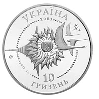 | На аверсе: в круге из бусин — изображение малого государственного герба Украины в окружении аллегорической композиции из Солнца, стилизованного крыла, птиц и звёзд. Логотип Монетного двора НБУ, надписи «УКРАЇНА 2003 10 ГРИВЕНЬ», обозначение металла, его пробы и веса чистого серебра «Ag 925 31,1». На реверсе: самолёт Ан-2, логотип «АН», надписи «ЛІТАКИ УКРАЇНИ АН-2 AN-2». |