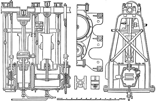 Каждый из двух двигателей самолёта представлял собой двухцилиндровую паровую машину с вертикальным расположением цилиндров. Машины имели двойное расширение, то есть в цилиндр малого диаметра подавался пар высокого давления, расширялся там и попадал во второй цилиндр (большого диаметра), где расширялся ещё раз. Материал двигателей — кованая сталь, трущиеся элементы (подшипники, золотники) — фосфористая бронза. Поршни были тонкостенными, коленчатый вал и шатуны — пустотелыми[115][30].