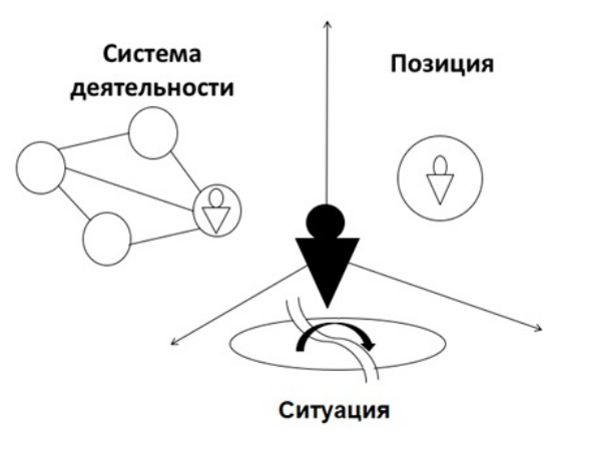 «Осуществление коллективной мыследеятельности требует самоопределения в позиции, в ситуации и в системе деятельности; если этого нет, то невозможны взаимопонимающая коммуникация между участниками игры, взаимодействие и совместное действие» «…Самоопределение должно совершаться, а не только называться…<…> С точки зрения игрока, это означает, что он должен „войти“, „встать“ на то или иное место в схеме и начать по её организационной логике осуществлять пробующие ходы и ситуативные действия». Позицию важно не только занять, нужно её удержать и сделать значимой для других участников процесса.