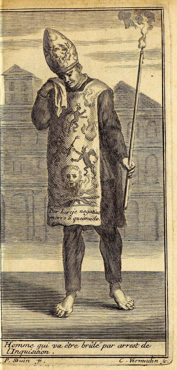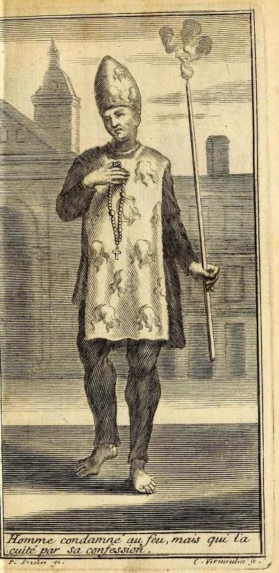 Три типа санбенито на гравюрах Корнелиса Вермюлена к книге Габриеля Деллона о португальской Инквизиции в Гоа, 1688