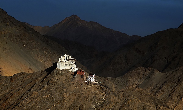 Лама из Санкар-Гомпы посещает форт середины 16 века, построенный Таши Намгьялом у Намгьял Цемо, и зажигает масляные лампы в небольших святилищах, откуда Лех открывается как на ладони.[3]