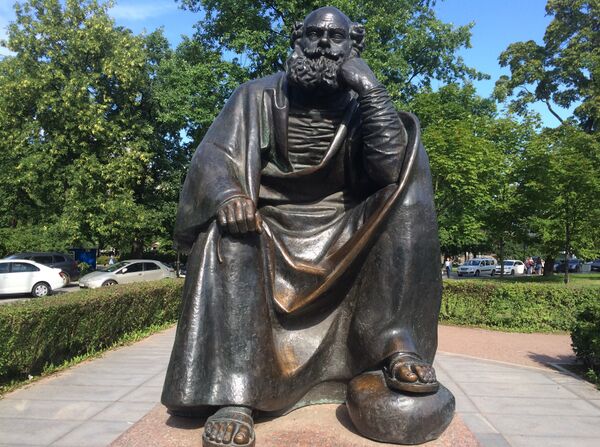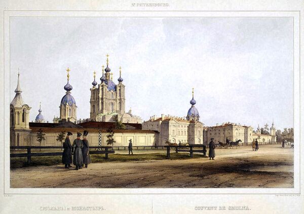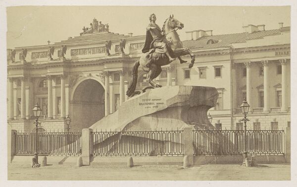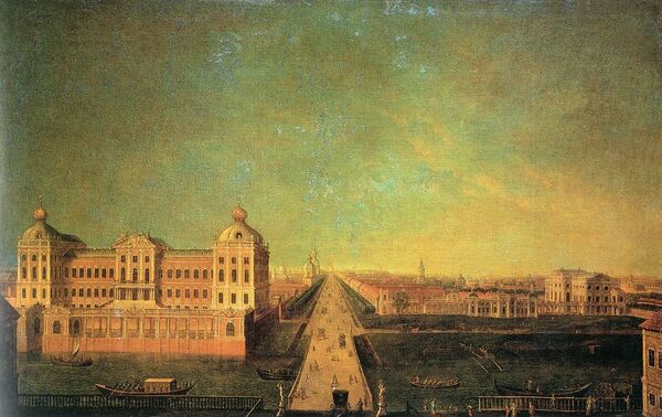 В эпоху классицизма Российская империя пропагандировала торжественный, мажорный образ Петербурга как идеального города, рождённого наперекор стихиям в соответствии с рациональными планами просветителей. В Европе за Екатериной II закрепилась репутация Северной Семирамиды, Петербург же называли Северной Пальмирой. Придворные поэты воспевали его в одах, пейзажисты круга Фёдора Алексеева создавали ведуты с видами бескрайних проспектов и площадей, где на фоне грандиозных строений теряются стаффажные фигурки людей[237].