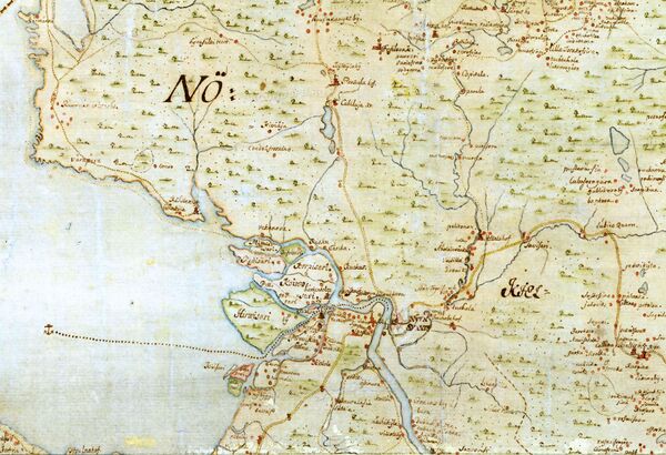 В ходе шведской интервенции начала XVII века территория современного Санкт-Петербурга была занята шведскими войсками. В 1611 году по приказу шведского короля Карла IX на месте Невского устья возведена дерево-земляная крепость Нюэнсканс (Nyenskans; со швед. — «невское укрепление»); с XVIII века в русском языке закрепился немецкий вариант названия — Ниеншанц). В 1610-х годах на правом берегу реки Охта напротив крепости по приказу шведского короля Густава II Адольфа основан г. Ниен (в 1632—1642 получил полные городские права). По Столбовскому миру 1617 года эти территории по реке Неве вошли в состав Шведской Ингерманландии, торговым и административным центром которой стал город Ниен около крепости Ниеншанц, построенной в 1611 году на месте Ландскроны. В 1656 году, во время русско-шведской войны 1656—1658 годов, Ниеншанц был взят и разрушен русскими войсками[57], однако по условиям Кардисского мира эти земли остались в составе Швеции. Вскоре г. Ниен с крепостью Ниеншанц были восстановлены и просуществовали до начала Северной войны[57].