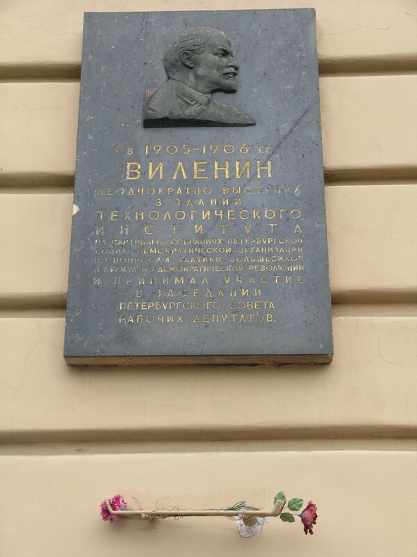 - мемориальная доска Горбунову Н. П., «Здесь, в Технологическом институте, в 1910—1917 гг. учился Николай Петрович Горбунов, советский государственный деятель, один из организаторов науки, академик». 1984. Архитектор Иванов В. М. Гранит.