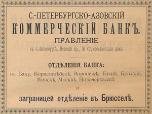 К 1901 году банк имел отделения в 10 городах России, а также в Брюсселе.